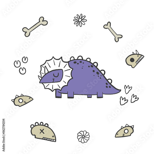 Hand drwan doodle dinosaur. Dino rex wildlife cartoon design. Illustration on isolated background
