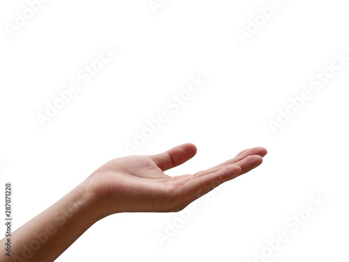 Hand. Empty open woman hand or face up hand isolated in white background.