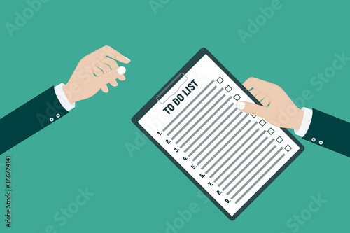 Hand filling checklist on To Do List. Vector Modern flat design concept for web banners, web sites, printed materials, infographics.