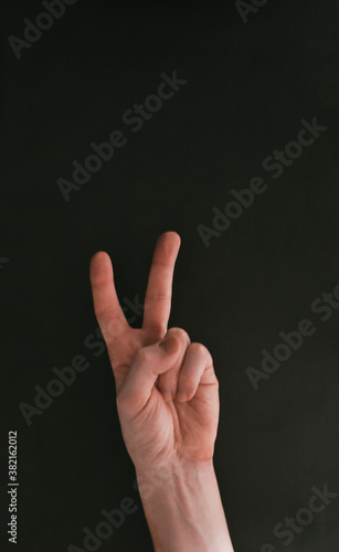 Hand fingers in v concept of peace, symbol of peace, free concept, sales concept, black free day campaign, positive publicity, copy space, social media, Black live matters, positivity, acceptance