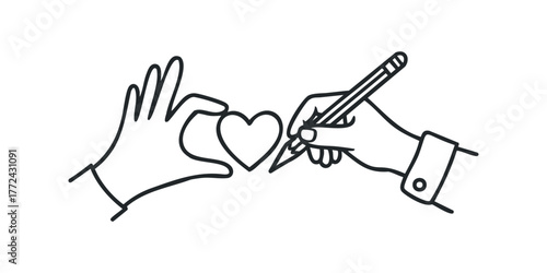 Hand forming heart shape next to pencil drawing heart