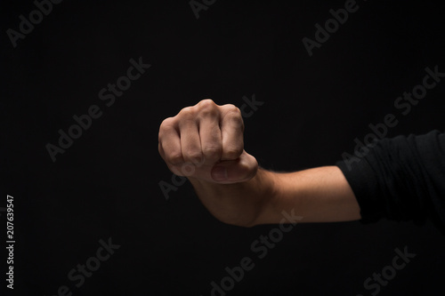 Hand gesture, man clenched fist, ready to punch isolated