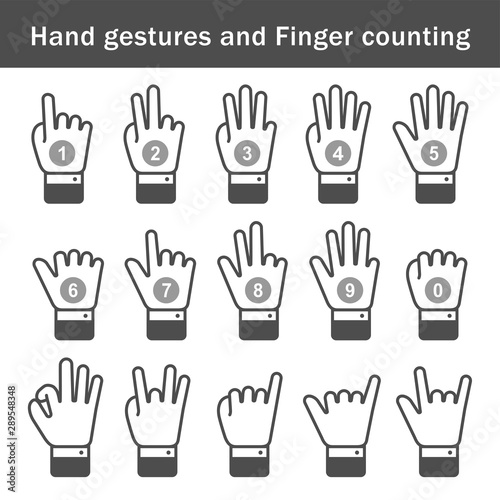 Hand gestures, Finger counting thin line icon set,numbers,symbol,vector illustration