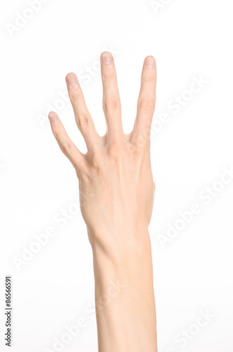 Hand gestures theme: the human hand shows gestures isolated on white background in studio