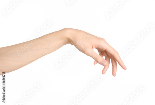 Hand gestures theme: the human hand shows gestures isolated on white background in studio