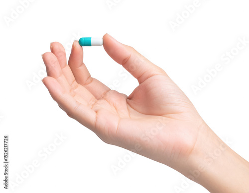 Hand gripping a pill demonstrating the importance of medication and health management in daily life for overall wellbeing and care isolate on transparent background