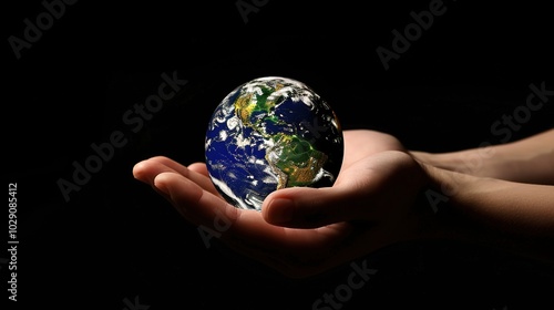 Hand Held Earth on a Black Background - a powerful and thought-provoking visual. The image emphasizes the fragility and beauty of our planet against a stark backdrop.