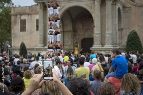 Hand held smartphone taking a picture of Castells Performance