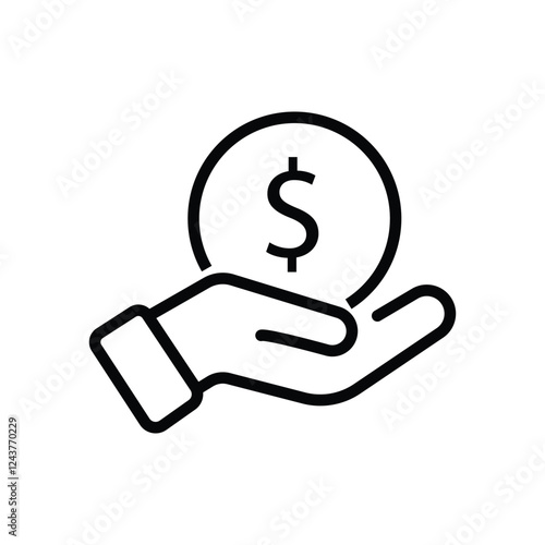 Hand holding a dollar coin line icon. Save money, salary, finance, cash concept. Logo symbol for web and mobile isolated on white background. Editable