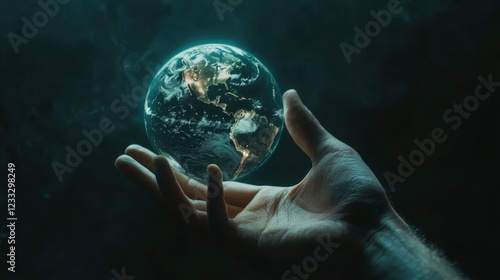 Hand Holding a Glowing Earth Globe in a Dark Atmosphere