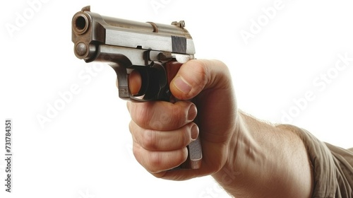 Hand Holding a Gun with Focus on the Barrel Isolated on White