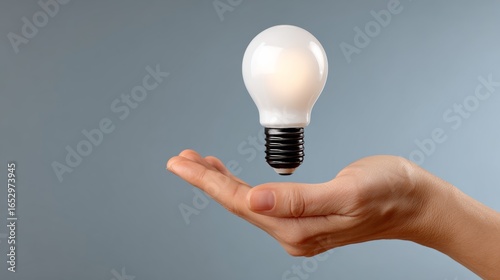 Hand holding a light bulb. The light bulb is lit up and is floating in the air