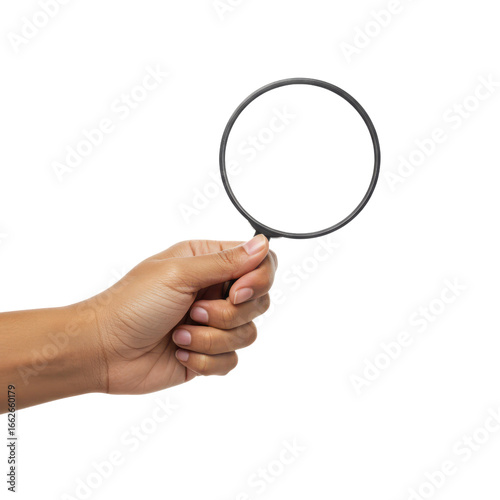 Hand holding a magnifying glass isolated PNG with Transparent Background
