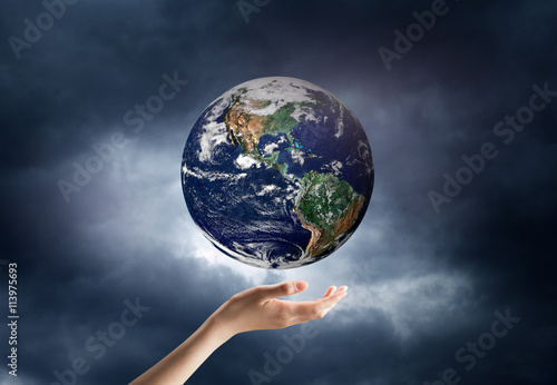 hand holding a planet in space. Elements of this image are furni