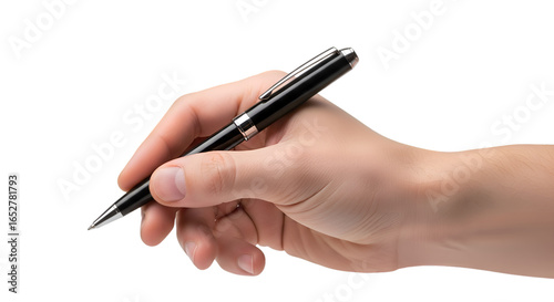 Hand Holding a Sleek Black Pen Ready to Write CloseUp View.