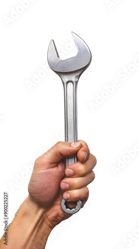 Hand holding adjustable wrench, DIY and repair tool concept, png