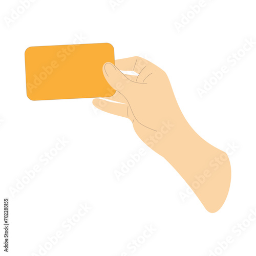 Hand holding bank card on white background with copy space for text. . Vector illustration