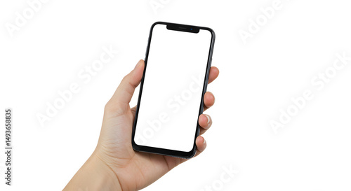 Hand Holding Black Smartphone with Blank White Screen