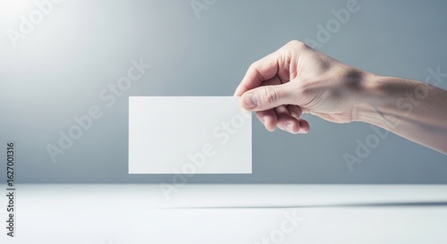 Hand Holding Blank Card Against Neutral Background