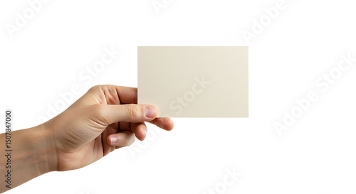 Hand holding blank card isolated on transparent background