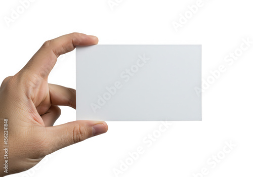 Hand holding blank card isolated on transparent background