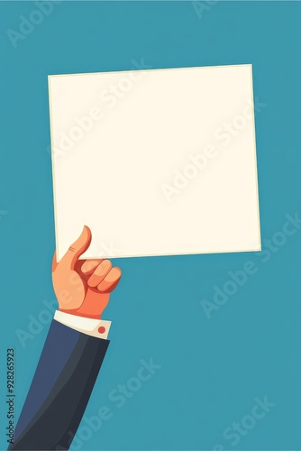 Hand holding blank sign with a blue background for messages or advertising