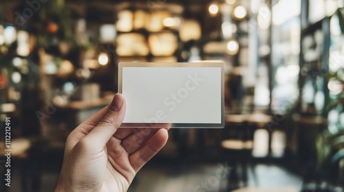 hand holding blank transparent business card/ mockup/template