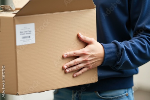 Hand Holding Cardboard Box: Perfect for Delivery, Moving, and Packaging Services