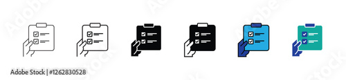 hand holding clipboard task list document icon vector business plan checklist assessment progress with checkmark signs illustration for web and app