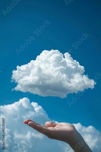 Hand Holding Cloud in Blue Sky
