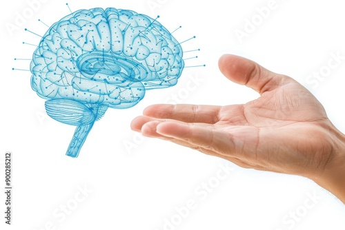 Hand Holding Digital Brain Model with Blue Neural Network Connections