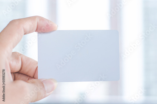 hand holding empty blank white business card mock up design text for advertisement branding.