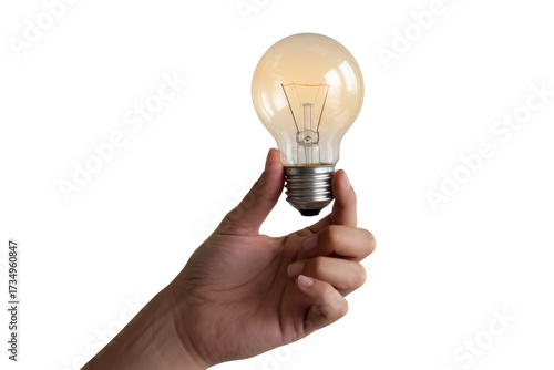 Hand holding glowing incandescent light bulb symbolizing bright idea innovation creativity and inspiration concept