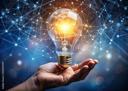 Hand Holding Glowing Network Lightbulb - Innovation, Idea, Technology, Inspiration, Future