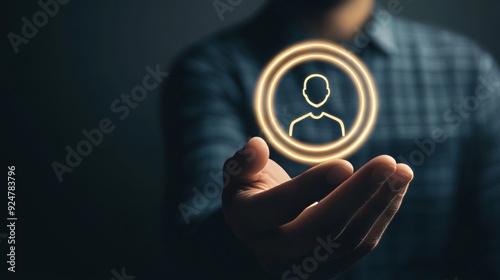Hand Holding Glowing Profile Icon: Recruitment and Talent Acquisition