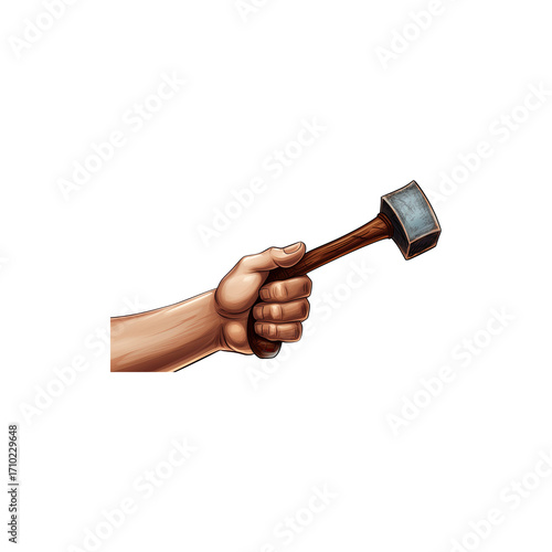 hand holding hammer on white background