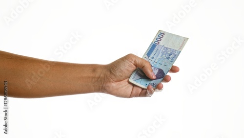 Hand holding korean won money on an isolated white background.