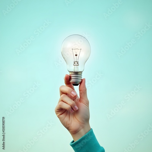 Hand Holding Light Bulb Against Pastel Sky - Minimalist Idea Visualization with Dreamy Atmosphere