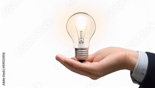 hand holding light bulb glowing on white background