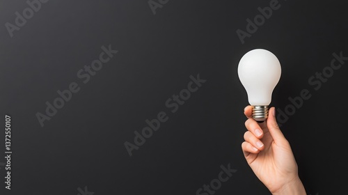 Hand holding light bulb on dark background. The light bulb shines brightly, symbolizing innovation and creative ideas. There is enough space for text.