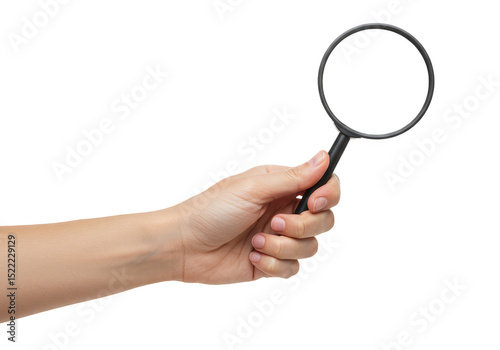 Hand Holding Magnifying Glass for Searching on Transparent Background