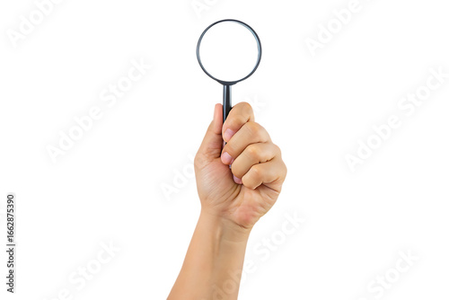 Hand Holding Magnifying Glass With White Circle Against Background lens isolated on a transparent background