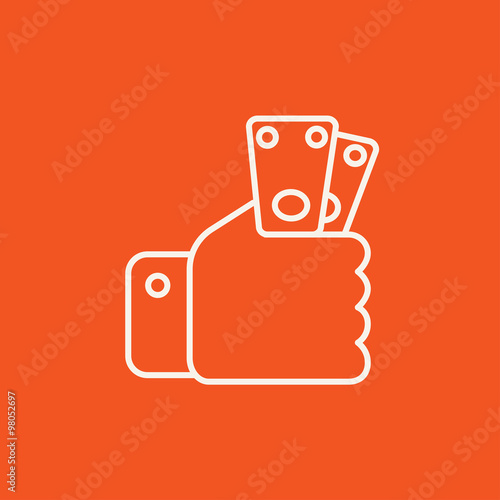Hand holding money line icon.