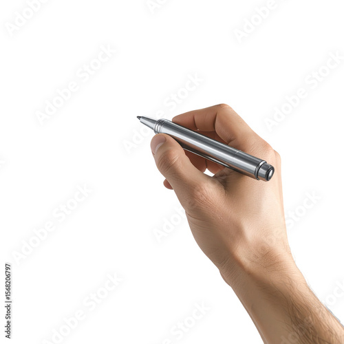 Hand holding pen against black background