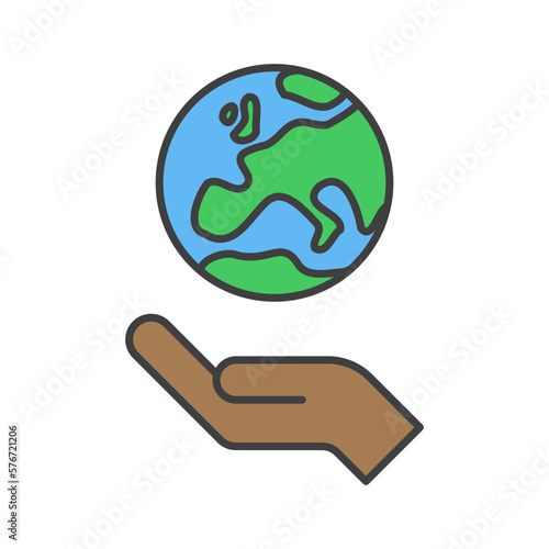 Hand holding planet earth, linear vector icon. Save the planet. Earth day symbol. World Environment Conservation.