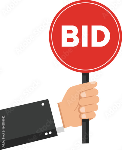 Hand Holding Red Bid Sign Auction Concept Illustration for Business and Commerce Vector