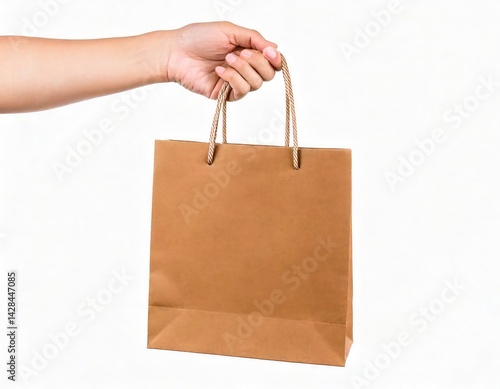 Hand Holding Simple Brown Paper Shopping Bag: Minimalist Style