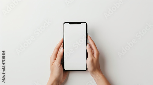 hand holding smart phone, mockup, empty screen