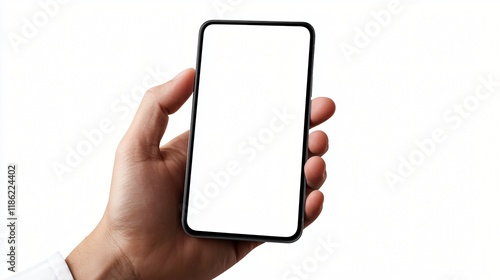 Hand Holding Smartphone with Blank White Screen Mockup for App Presentation