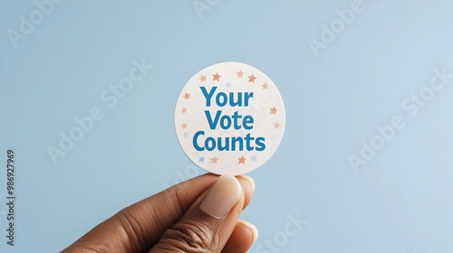 Hand Holding Sticker Promoting Voter Motivation and Election Significance